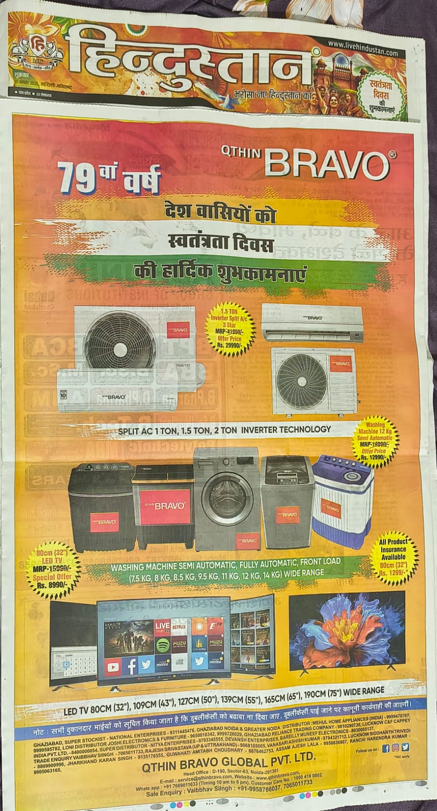 Independence day Advertisement in "Hindustan Hindi Newspaper"